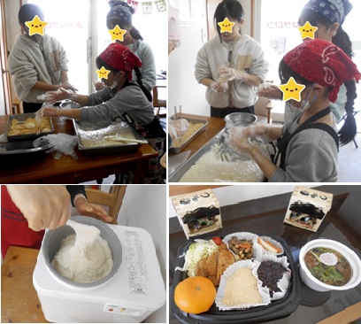 【団体名】あかねちゃん家 【感想等】 1月のこども食堂で「もちつき大会」を計画し、寄贈いただいたもち米を活用いたしました。献立は、小豆やきなこ餅、仙台風お雑煮、ヒレカツ等のメニューでした。お正月にも餅は食べなかったという参加者もいて、餅つきも珍しく楽しかったようです。ふかしたてのもち米やつきたて餅、お雑煮もすべて味見して「おいしい」とのお声をいただき、いろいろな食体験ができたと思います。 【写真等】