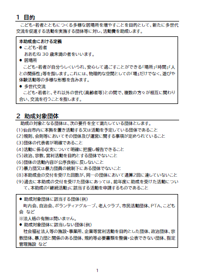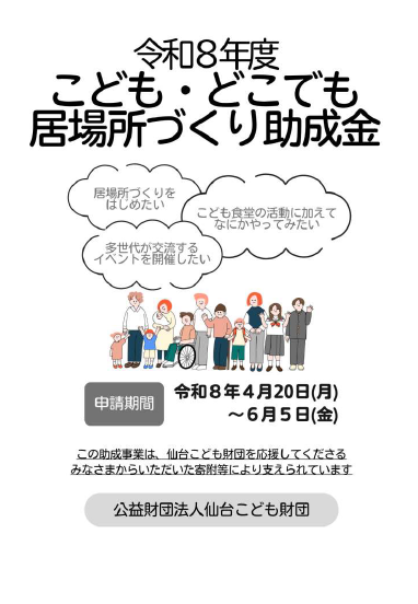 詳細については下記のURLをご確認ください。https://sendai-kodomo.jp/service/ibasho-proposal/